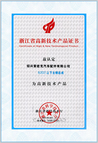 公司已先后通過IATF16949質(zhì)量管理體系認(rèn)證、ISO/14001環(huán)境管理體系認(rèn)證和OHSAS18001職業(yè)健康安全管理體系認(rèn)證。是“國(guó)家高新技術(shù)企業(yè)”“行業(yè)龍頭企業(yè)”和“全國(guó)百家優(yōu)秀汽車零部件供應(yīng)商”。